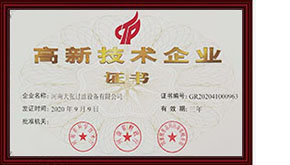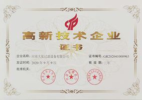 2020年9月9日——河南大張過(guò)濾設(shè)備有限公司榮獲“高新技術(shù)企業(yè)”證書